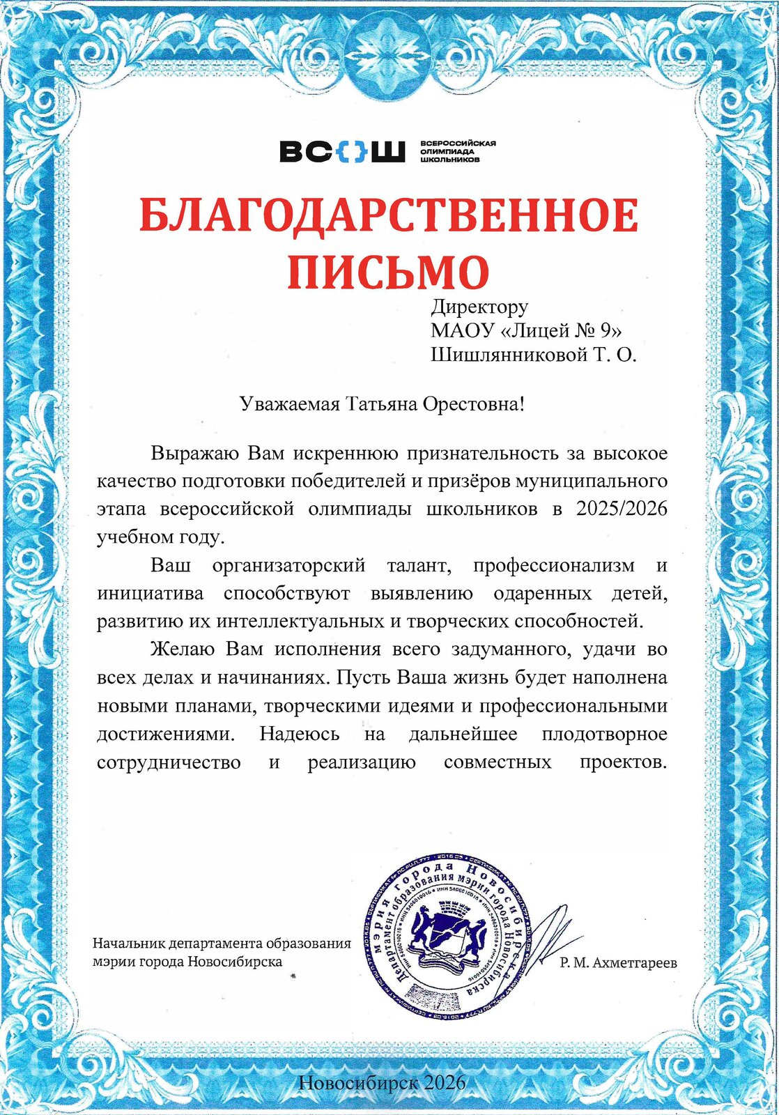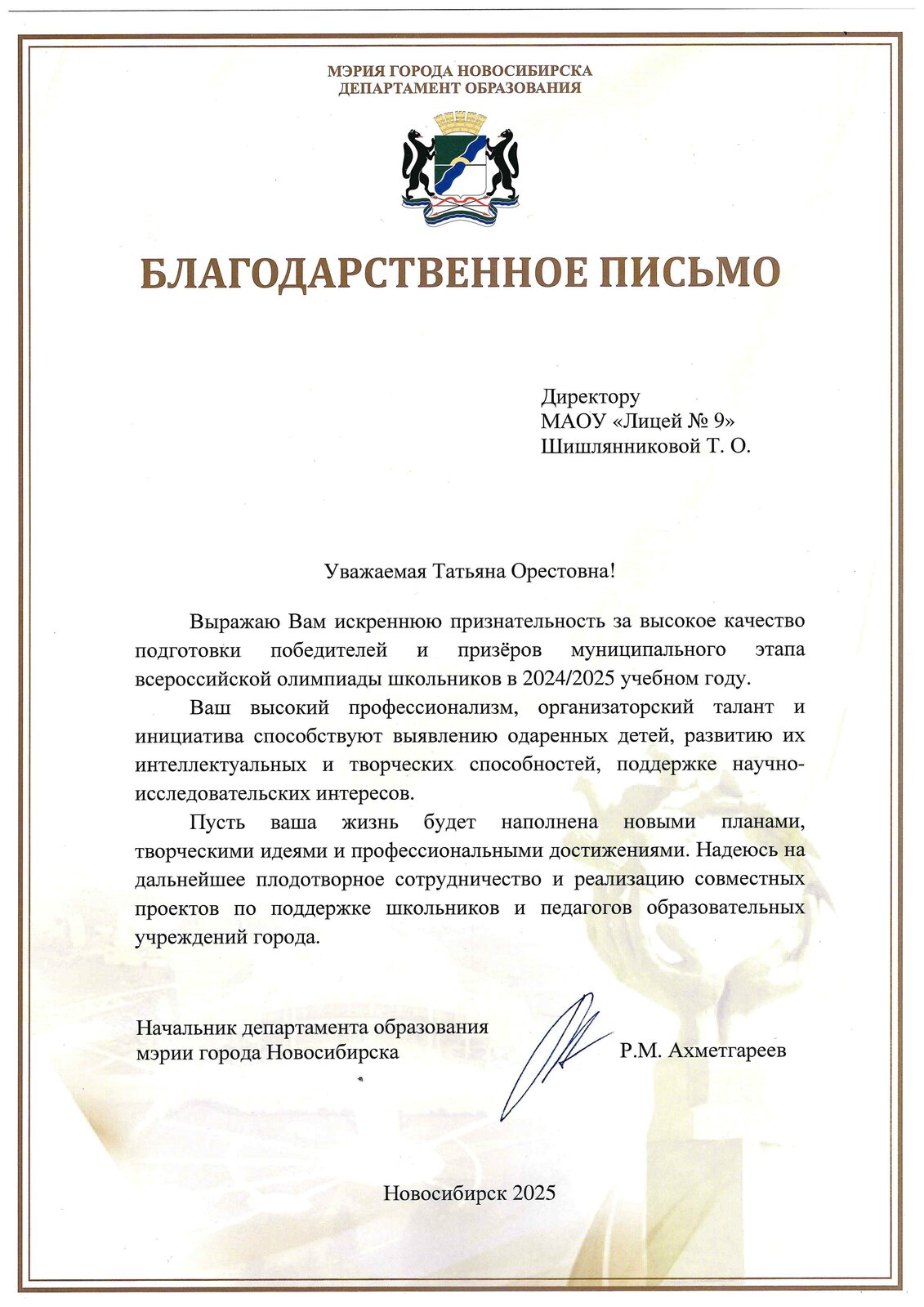 С 2008 по 2025 год – лицей – в первой десятке образовательных организаций города по итогам Всероссийской олимпиады школьников.