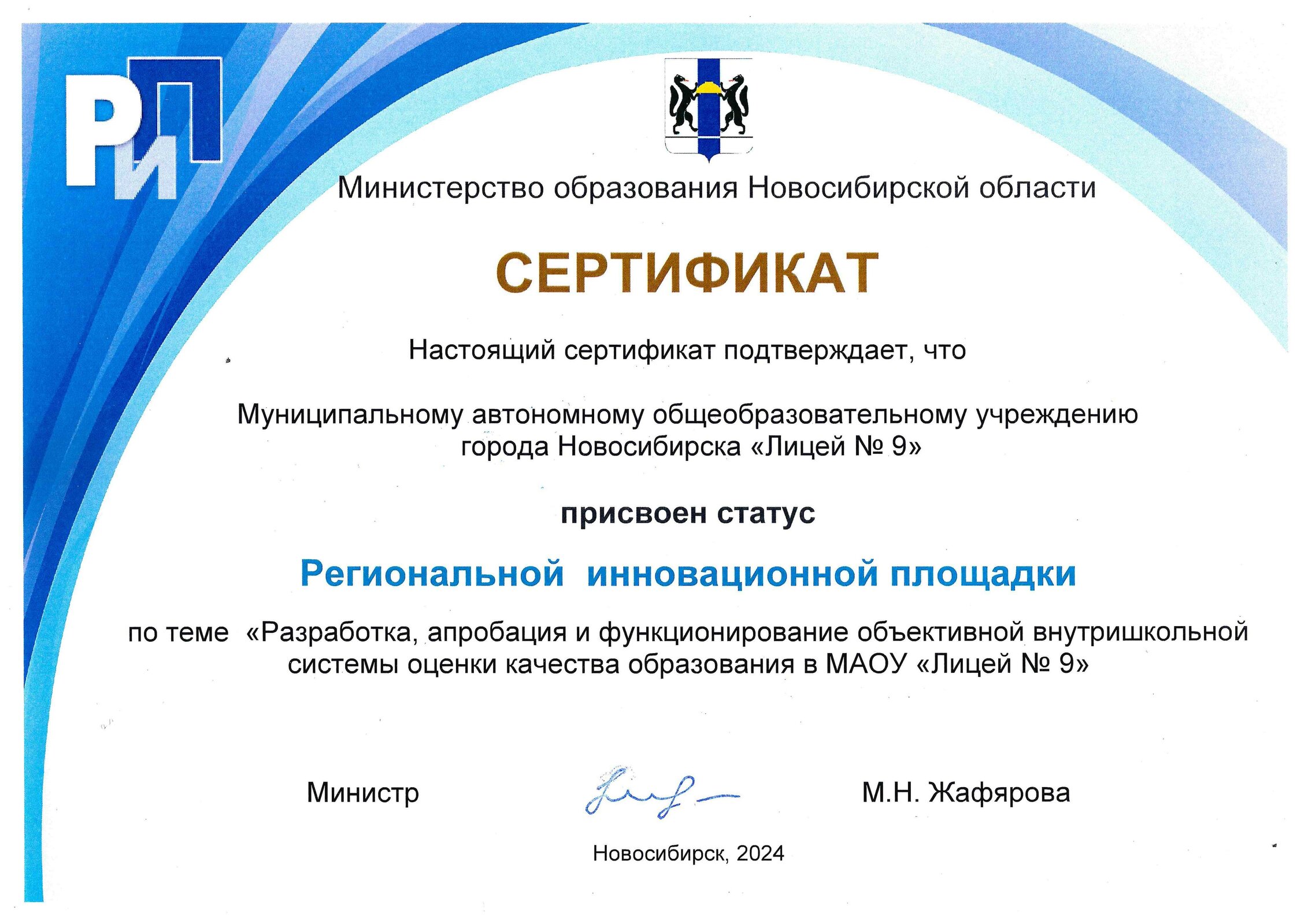 - с 2025 года лицей имеет статус «Региональной инновационной площадки».