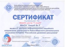 В конце мероприятия состоялось подведение итогов и вручение сертификатов участникам медиа школы РДШ. Не стал исключением и наш медиа-центр, теперь он является центром информационно-медийного направления деятельности Новосибирского регионального отделения ООГДЮЮ "Российское движение школьников"