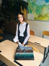 А на географии лицеисты рассказывали про круговорот природы и добычу золота. Ученица 6 «в» класса Анастасия ЗИМОВА подготовила макет и наглядно продемонстрировала, как происходит круговорот веществ в природе. Актуальной оказалась тема добычи нефти. Леонид СУПРУН из 6 «б» класса представил макет добычи нефти и наглядно показал, как добывается нефть. Леня говорил о пользе и вреде этого вещества.