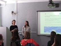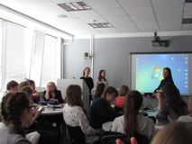 В финале мероприятия каждый пресс-центр продемонстрировал результаты своей работы. Ученицы специализированных классов – Валерия ЧЕРНЯКОВА (8и) и Мария ОСТРОВСКАЯ (9м) представили наш проект и рассказали о том, что у нас получилось.