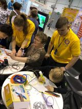 Первая площадка - проекты по инженерным компетенциям от учеников начальных классов и инженерных (IT). Умный город, картины из мусоротроники, электронный город сделанный из электронных плат с функционирующими остановками, светофорами и тд.