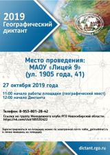 27 октября новосибирцы активно поддержали международную акцию Географический диктант. 99 площадок – в школах, библиотеках, вузах, домах культуры, военных частях - объединили любителей географии. В этом году Диктант написали также слабовидящие и незрячие на специально подготовленных площадках региона. За 45 минут участникам необходимо было ответить на 40 вопросов из разных разделов географии. Все они – о России. В этом году вопросы диктанта отличались от вопросов предыдущих диктантов. Он состоял из 40 вопросов, разделенных на две части, различающиеся по степени сложности. Первая часть базового уровня из 10 вопросов, так называемый "географический ликбез", составлена на основе общеизвестных фактов из географии, вторая часть (30 вопросов) потребовала применить образное мышление, системную логику и эрудицию.