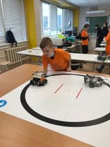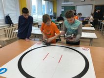 Участникам первой секции предстояло подготовить робота - сумоиста, который смог бы вытолкнуть за пределы поля робота противника.