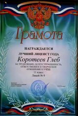 9 лицей в этом году представляли ученик 11 «Г» класса Глеб Коротеев и учитель математики высшей квалификационной категории Андрей Юрьевич Веренцов.