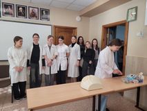 Ребята проходили теоретическую часть, где выполняли тест из 40 вопросов, и практическую часть, состоящую из 6 этапов: инъекции, наложение повязки и транспортировка, инородное тело в верхних дыхательных путях, сердечно-легочная реанимация.