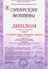 Поздравляем ученика 7 Б класса Крупенко Никиту ставшего лауреатом I степени на III Международном  конкурсе – фестивале «Сибирские мотивы»