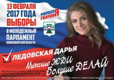По итогам выборов ученица 10 «Г» класса МАОУ «Лицей № 9» Ледовская Дарья набрала большинство голосов и прошла в парламент Новосибирской области. Желаем Дарье плодотворной работы в области молодежной политики.