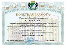 Лучшим коллективам сферы образования города Новосибирска были вручены Почётные грамоты министерства образования, науки и инновационной политики Новосибирской области, Совета депутатов города Новосибирска и мэрии города Новосибирска, а также Благодарственные письма мэра города Новосибирска.