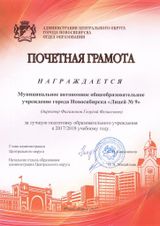 Поздравляем коллектив лицея с награждением Грамотой администрации Центрального округа за лучшую подготовку образовательного учреждения к 2017/2018 учебному году.