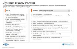 Лучшие школы России — это ежегодный перечень лучших образовательных организаций России, который составляется с 2013 года. Начиная с 2015 г. оценка вклада общеобразовательной организации в качественное образование определяется по результатам ОГЭ и по результатам олимпиад. Вхождение в перечень означает высокую степень подготовленности учащихся к продолжению обучения.