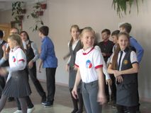 К концу 2-го урока на 2 и 3 этажах Лицея стали собираться люди – участники, организаторы, зрители. Прозвенел звонок, и заиграла музыка. Посреди коридора ученики устроили флешмоб – они начали синхронно танцевать под зажигательную музыку. В первых рядах многочисленных танцующих были ребята - активисты РДШ в футболках с символикой движения. Они невольно создали в лицее атмосферу радости, подарив присутствующим задор и улыбки.