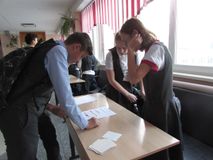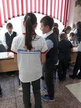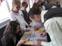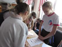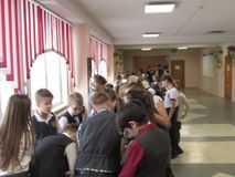 На следующей перемене развернулось еще более интересное действие: к представителям РДШ присоединились другие ребята, и вместе они подготовили викторину, предлагавшею проверить свои знания в области страноведения. Всем желающим давали листочки с изображением государственной символики, традиционной пищи, костюмов и валюты 10 разных стран и просили определить страну. Интерес к мероприятию проявили все – от учеников начальной школы до педагогов. Сами участники викторины сказали, что местами было сложно, но, без сомнения, очень интересно!